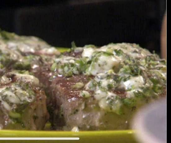 Covered with a succulent mushroom gorgonzola butter sauce served with baby red potatoes and sauteed vegetables